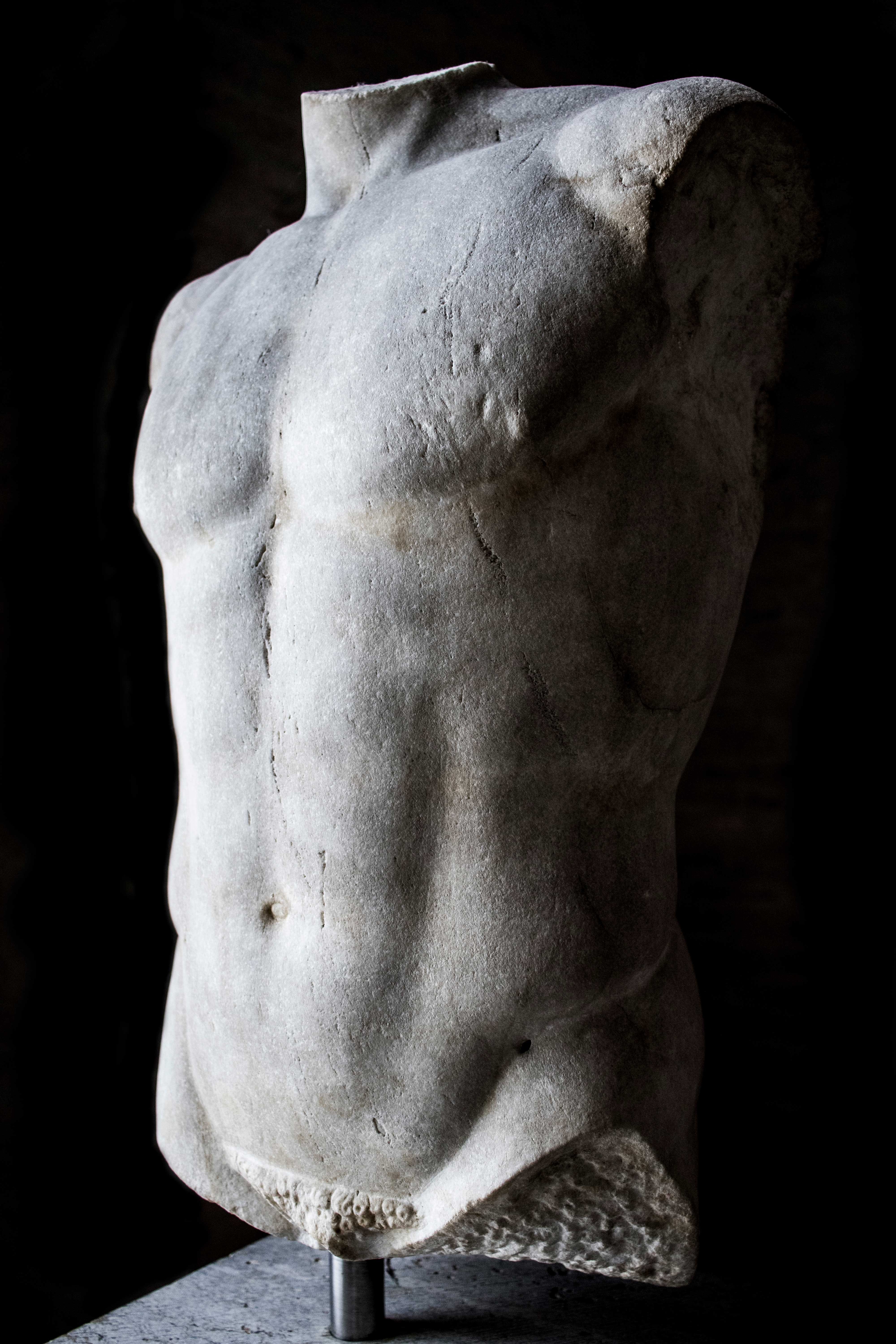 Der menschliche Körper ist bis in anatomische Details genau erfasst. Doch zeigen stilisierte Formen wie etwa am Rippenbogen oder an der Bauchmuskulatur, dass es den Griechen stets um ein ideales, nicht um ein naturalistisches Bild des Menschen ging.